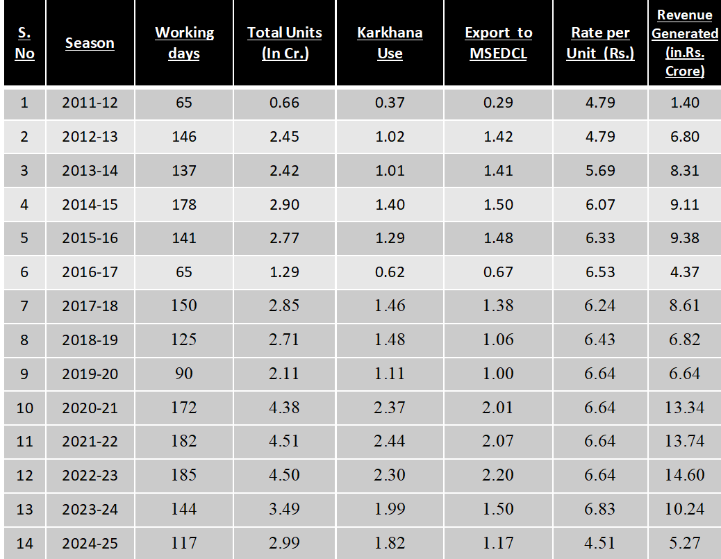 Our CO-Gen Plant DetailsSeasion Wise Power Genration Data